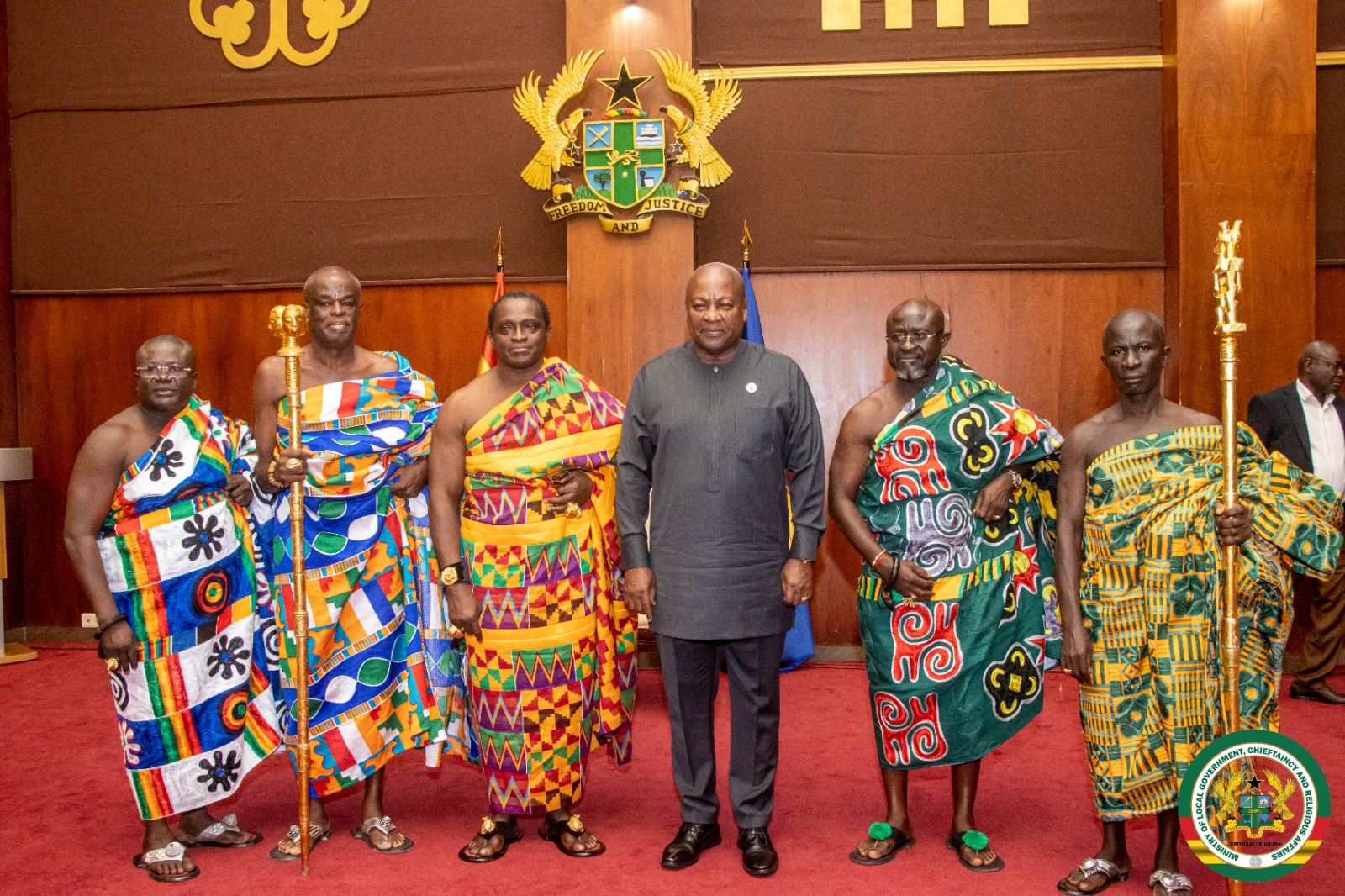 The Minister for Local Government, Chieftaincy and Religious Affairs, Hon. Ahmed Ibrahim, joined and led the delegation, consistent with the Ministry’s mandate to strengthen collaboration between government and traditional authorities.